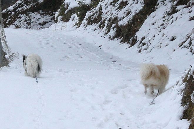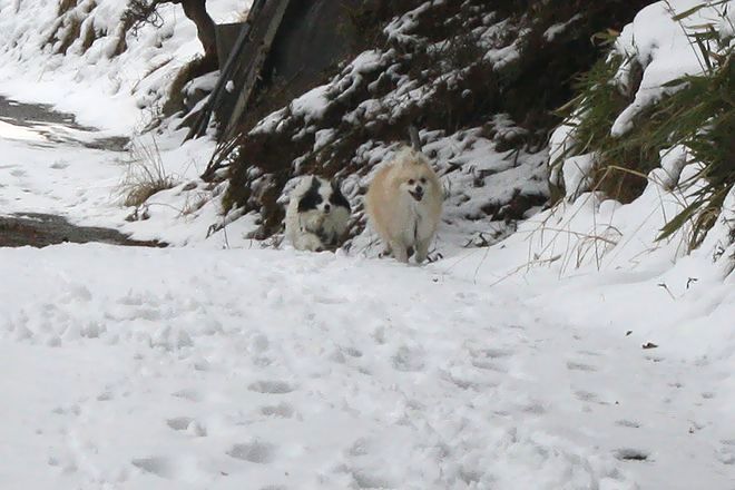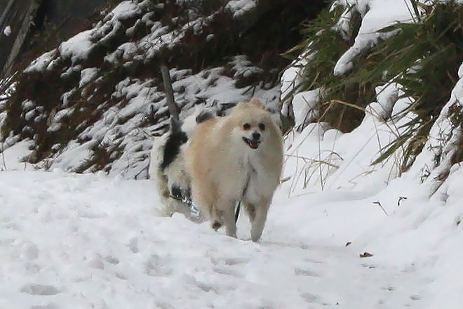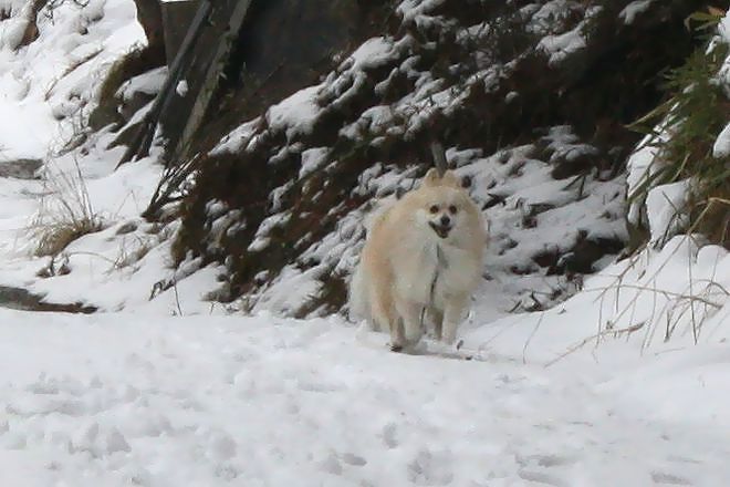 今回は雪原の方がさっきの写真の状態だったので、前回ジョンが爆走した坂の方へやってきました。