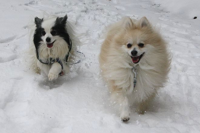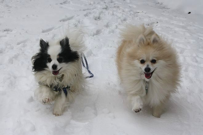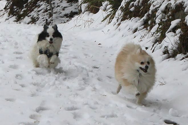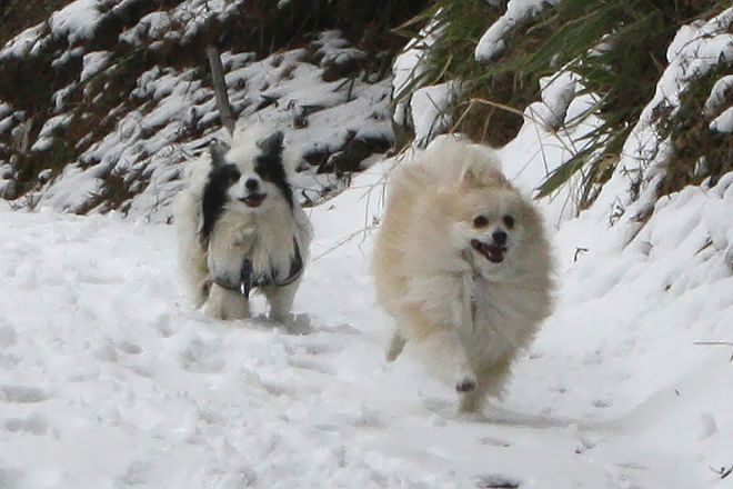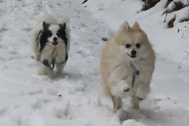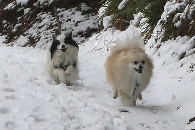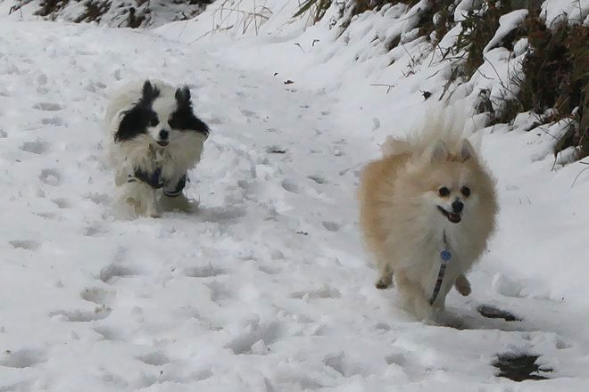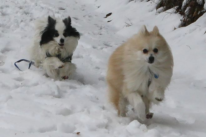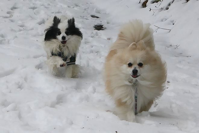 ジョンくんとパピくんが同時に走ってくる写真、よく両方にピントが合ってますね。