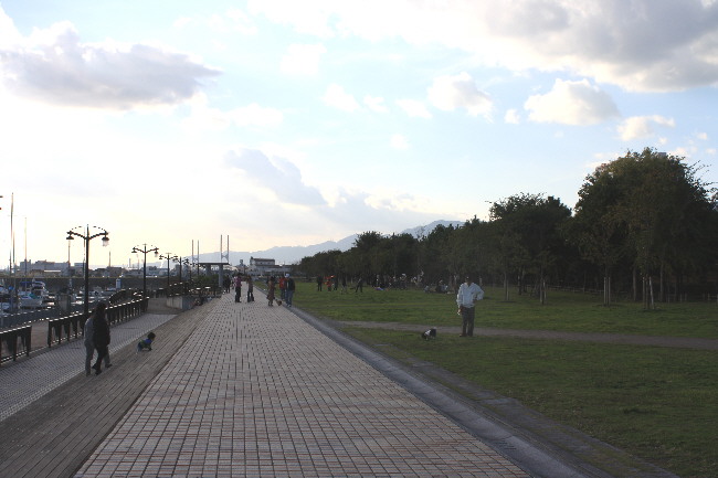 1時間弱かかって着いた先は西宮浜の浜辺の道公園。