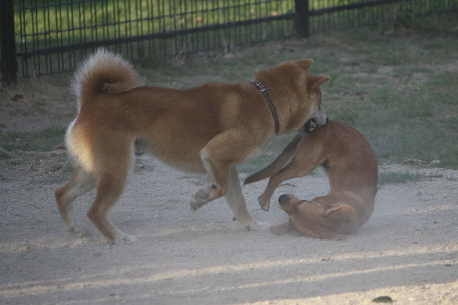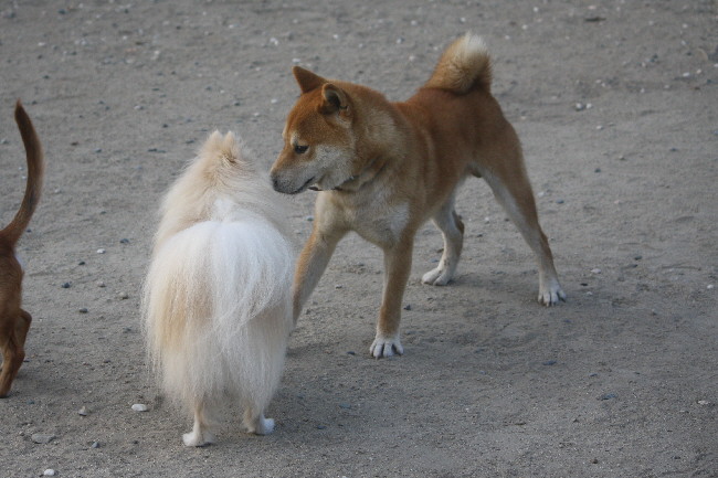 柴君とダックス君が激しく遊んでいる時は、混じりたそう近付いて行ってました。