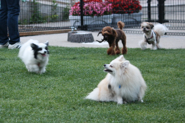 さすがに疲れていたのか、先客の子達遊ぶ事はなかったけど、ジョンもパピも楽しそうにラン内を散策してました。