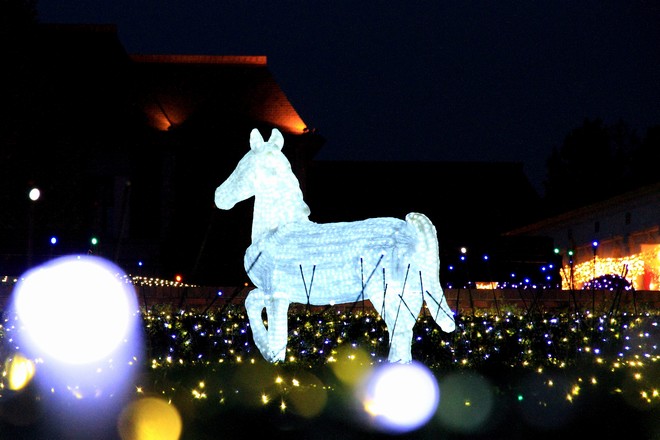 光のトンネル前から広場にある馬車を撮りました。