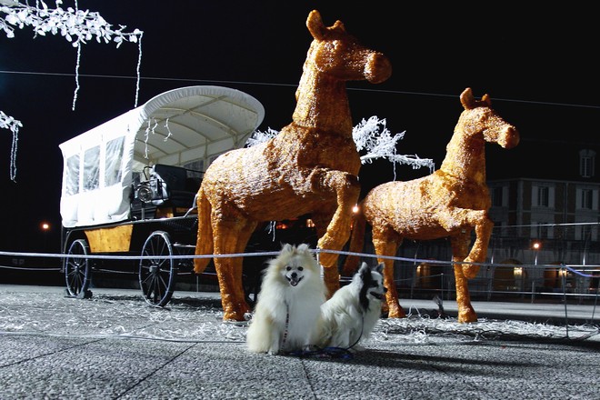 最後に先程光のトンネル前から撮った広場の馬車の前でパチリ