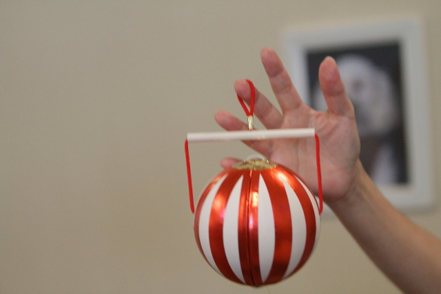 どうやって割るのかと思っていたら、なんと紐の先にクッキーが付けてましたw