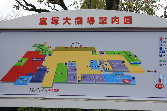 桜のトンネルを抜けると宝塚大劇場(宝塚歌劇)があります。