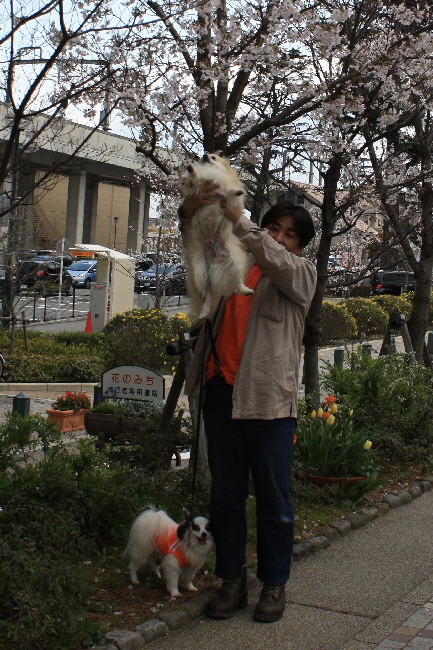 「よくみなさんが桜をバックにわんこを持ち上げてる写真」てあるけどそうなんだ。ごめん・・・私それ見たことないんで、きっとおっちゃんと同じことすると思う。「ほーら、たかいたかーい!」の瞬間を撮ってほしいのかと思ったんちゃう?ま、それにしてもカメラの腕前はPuPuPu~だけど!