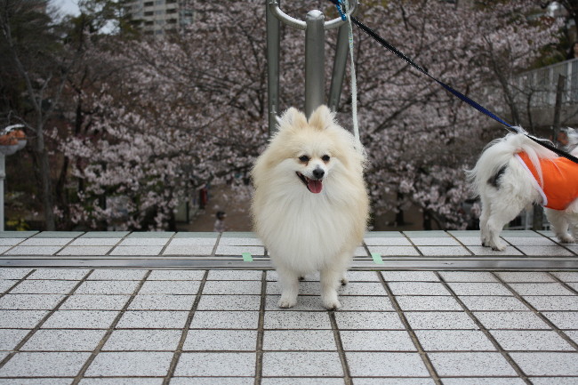 でもジョン君もパピちゃんも桜には興味なさそう(笑)