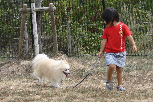 お嬢ちゃんがランから出るまで、こうして散歩させられたジョンでした(笑)