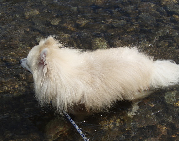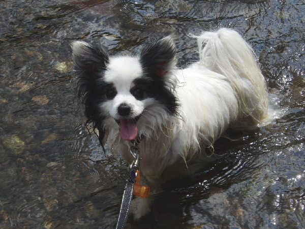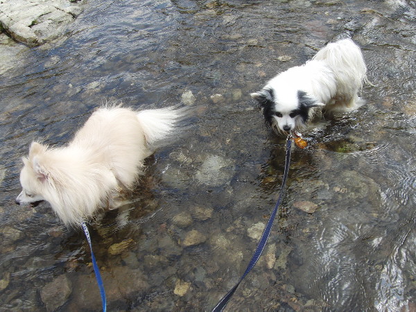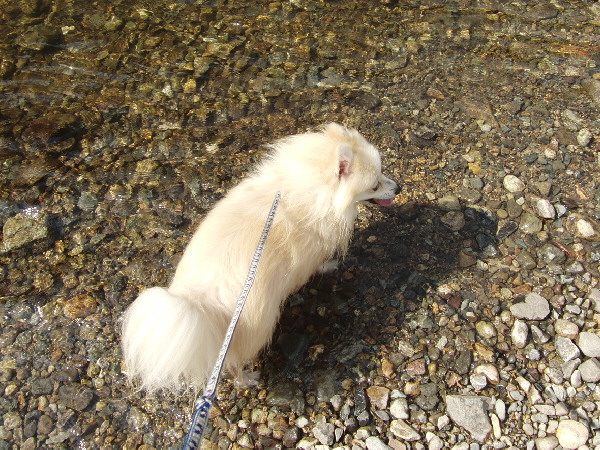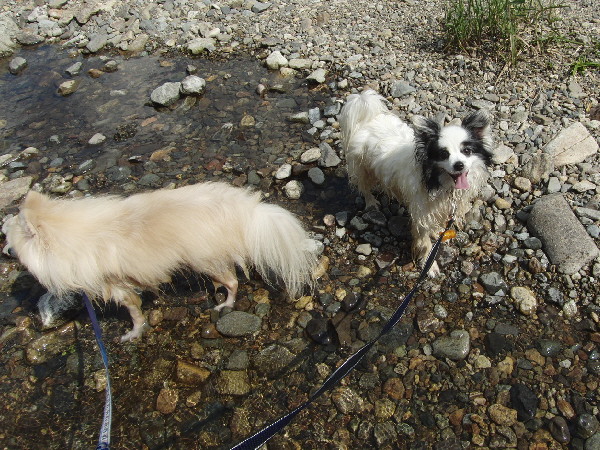 「よ~し、お前らも水遊びをして綺麗になりなさい」と川原に降りてきました。