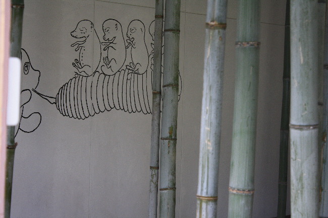 うちのカメラでは全体像が撮れなかったけど、この作品は天井まで人の木が伸びていました。