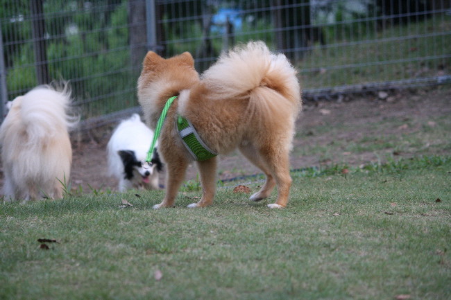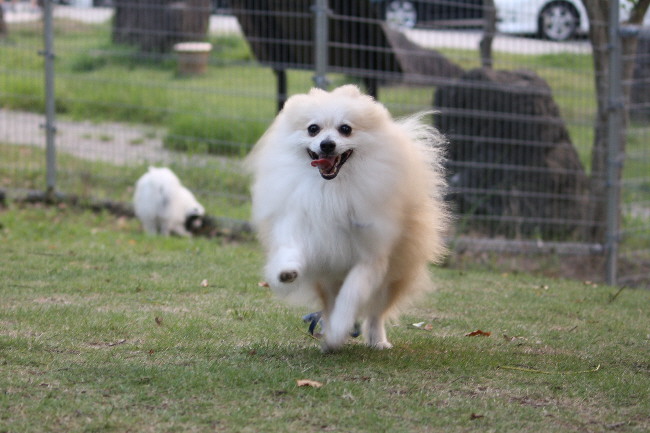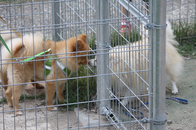 チビっ子が外に出てしばらくすると、サマーカットをした3ポメを連れた方がやってきました。
