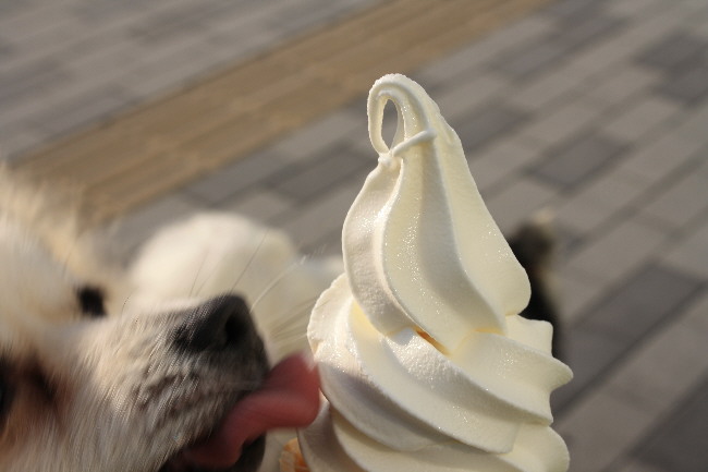 ソフトクリームを撮っているとジョンに先に食べられた(^^;)