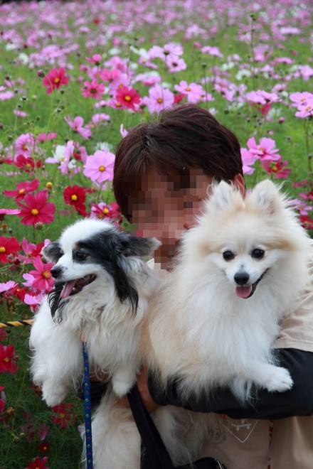ここのコスモスは背が低いのでワンコと写真を撮るには