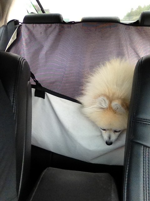 パピもよくやるんですけど、これは後席用のエアコン噴出し口で涼んでるんです(笑)