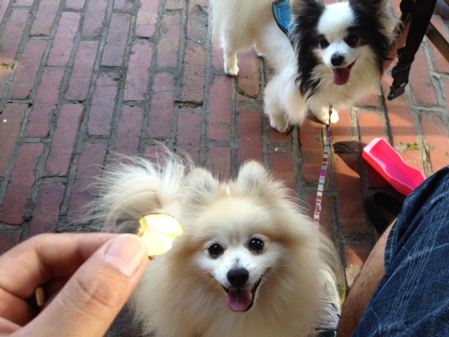 タレ漬けされていない肉なのであげても大丈夫かな?とも思ったけど、ポンポンが痛くなったら大変なので(笑)、サツマイモをあげました^^