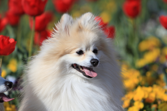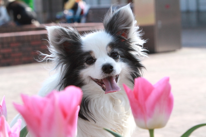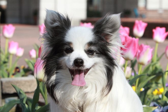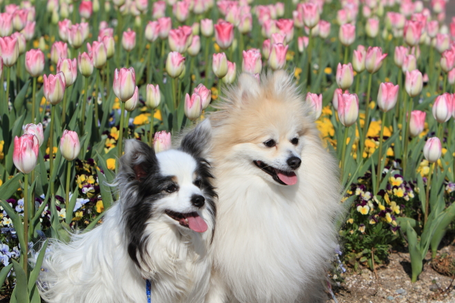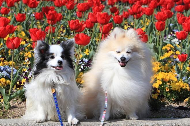 フラパのチューリップ綺麗ですね~ジョンくん、パピちゃんとチューリップいい写真ですね~とっても可愛くて綺麗です☆