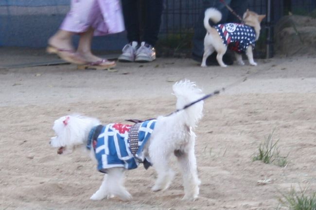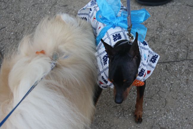 この催しは浴衣を着てると入場が無料になるので、浴衣を着てきているワンコや飼い主さんが大勢来ていました。