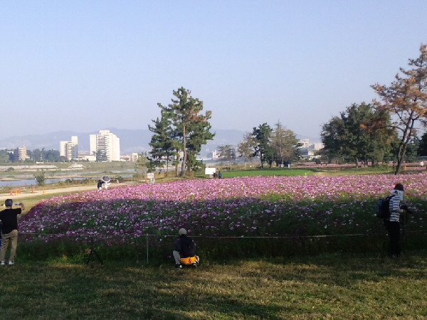 もちろんワンコ連れの散歩の方も大勢いらして、コスモスをバックに写真を撮られていました(^-^)