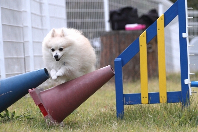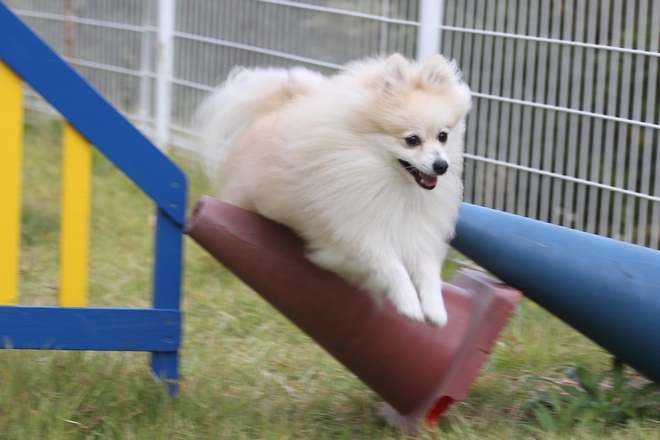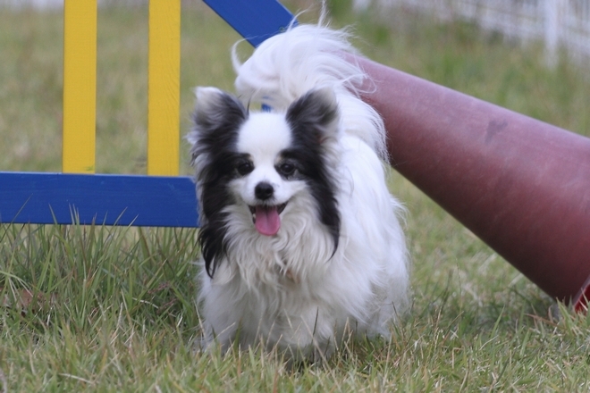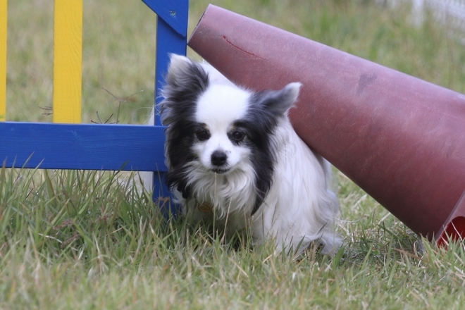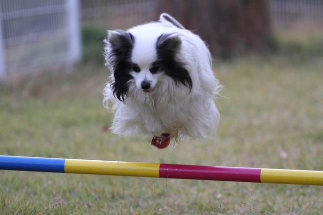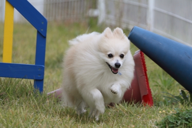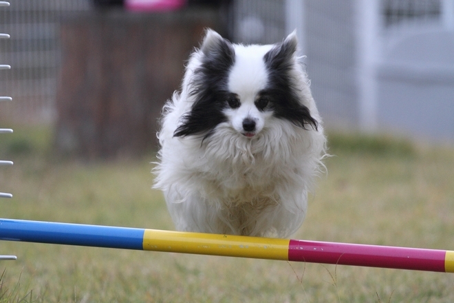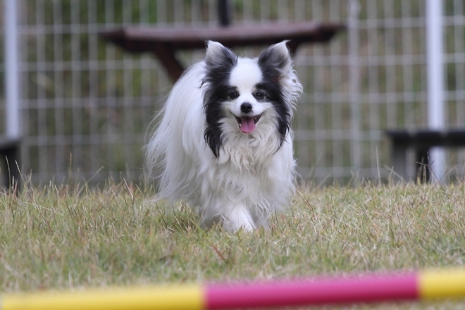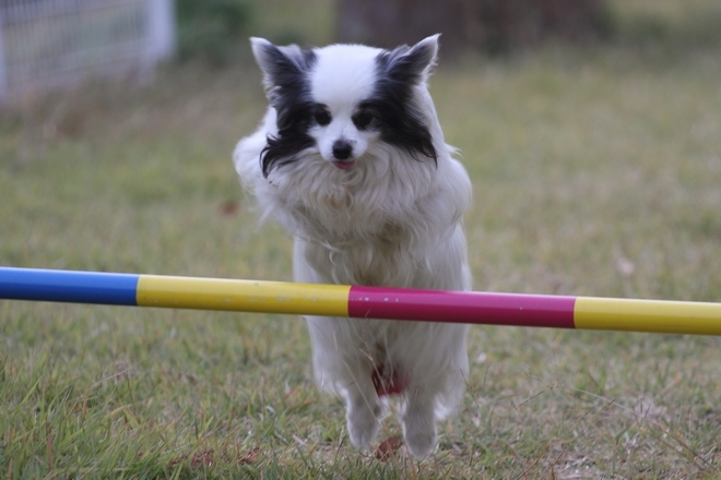 たまにコーンの下をくぐったりするパピですが、パピは基本こうしてバーを跳ぶんだけど、