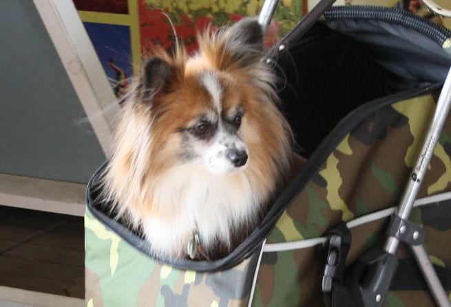 その途中でカートに乗ったパピヨンちゃんに会いました。