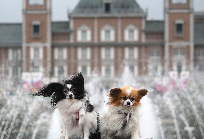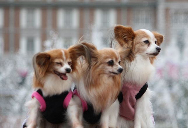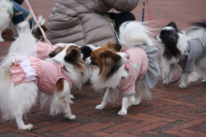 【パピヨン犬のマリリンちゃんと♀お散歩画像集。】のミルキーちゃんとハッピー君