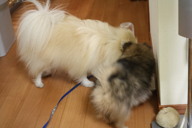 チビがちょっかいをかけにいくと威嚇してその時は追い払うんだけど、怖いもの知らずのパピーはどこ吹く風で何度も行っては怒られてました(笑)