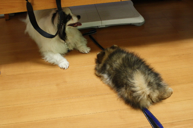 ちなみにチビが携帯ストラップの様になっていますが(笑)、これはパピのリードをカジカジしているところです(^-^)