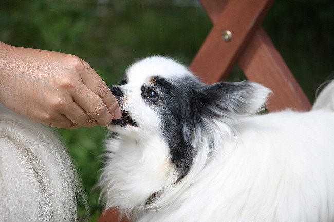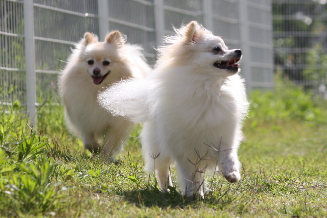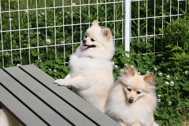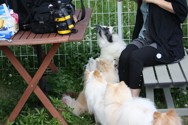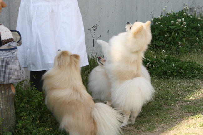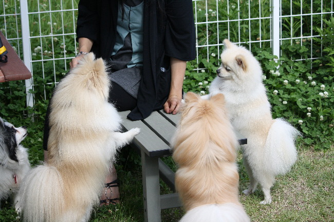 ポメ版ヤルタ会談・・・ おやつに不満があるのかな?