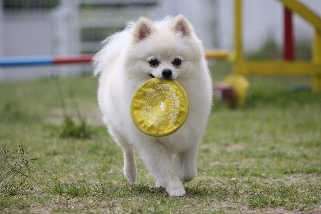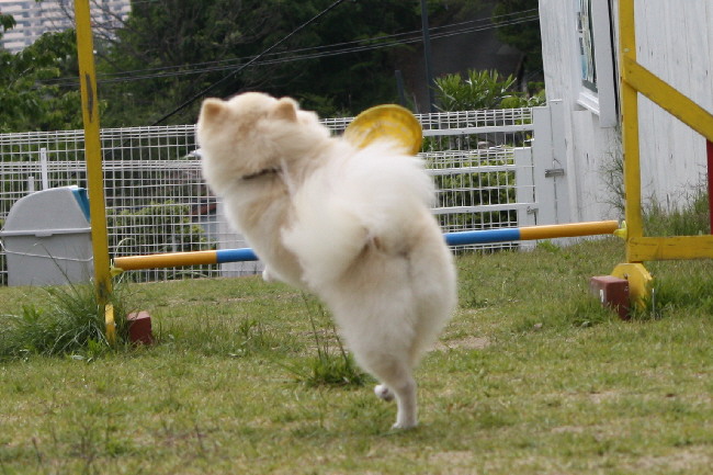ボール遊びが終った頃(誰も投げても取りに行かなくなった(笑)に、ハロ君のフリスビーが始まりました。
