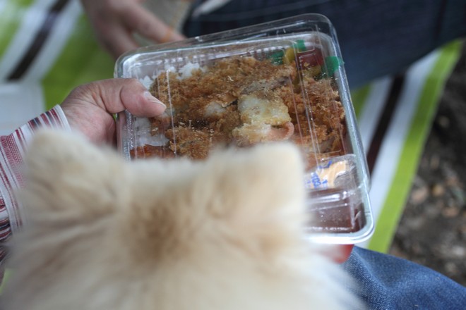 ジョンの眼力に負けたのかw、パンママさんがカツを分けてくださいました。←いや眼力に負けたと言うのは嘘だけど。