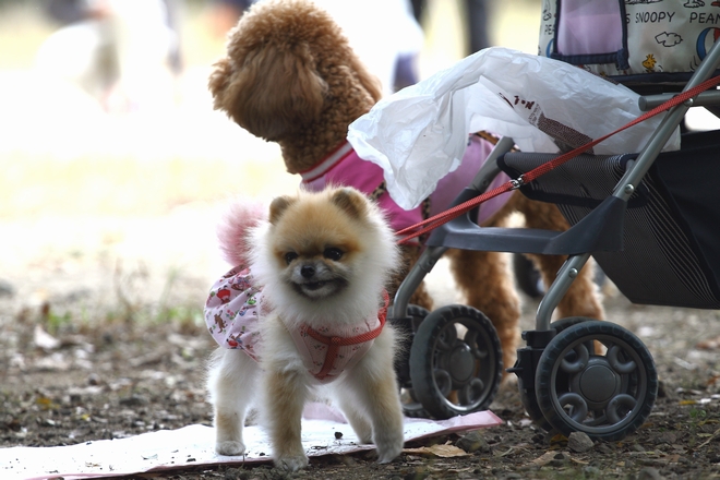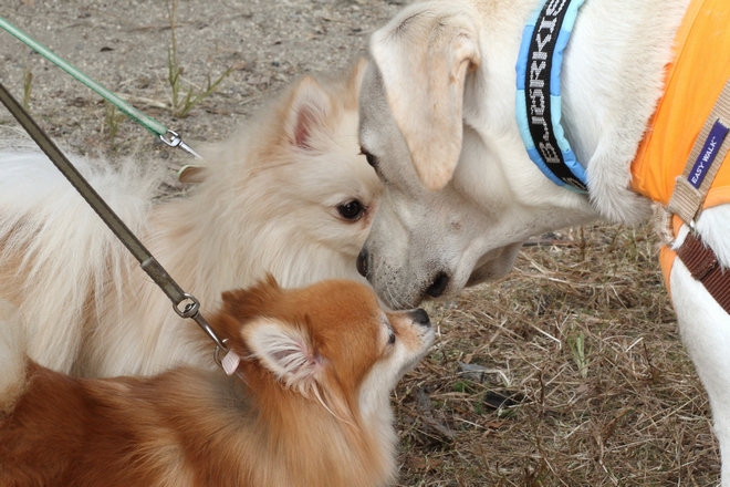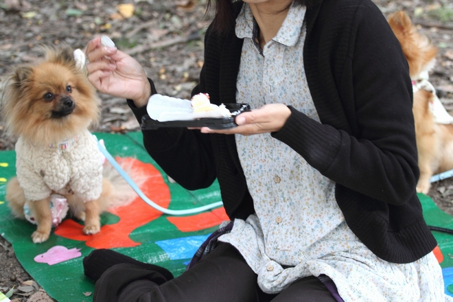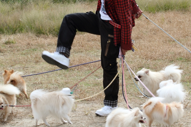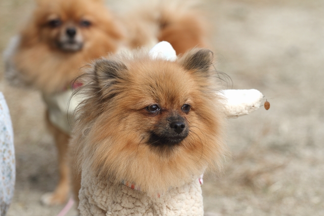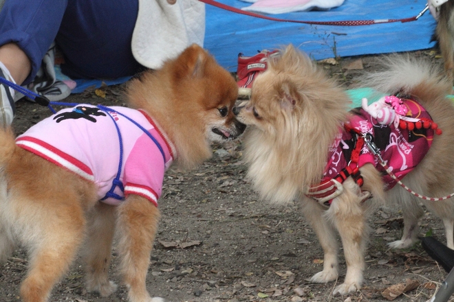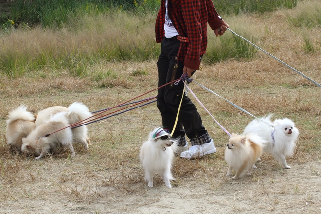 こうして写真を撮っているとマキティさんの彼氏さんが、マキティさんちの5ポメを連れて散歩されはじめました。