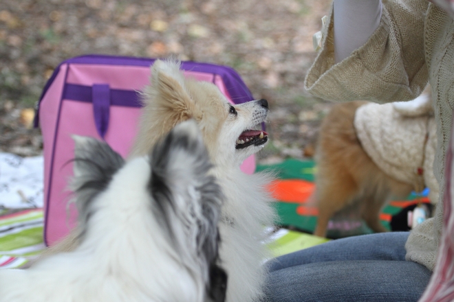 敷物を忘れた自分は断りもなくパン家の敷物の端に座ろうとすると、めちゃサニーちゃんにガン見されました(笑)