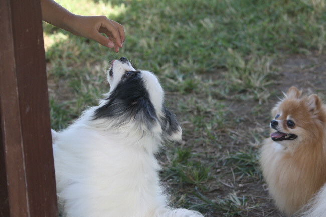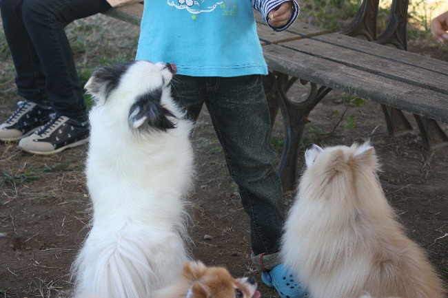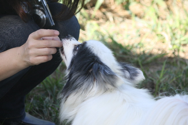実はパピをダッコしようとオヤツでおびき寄せたクッキーママさんでしたが、食い逃げされてました(笑)