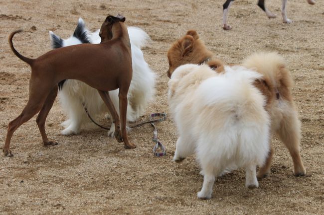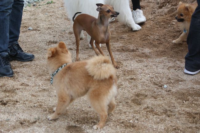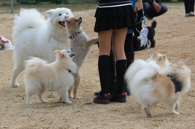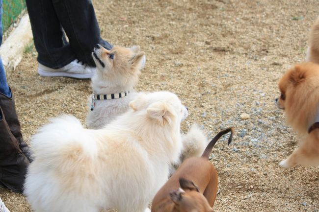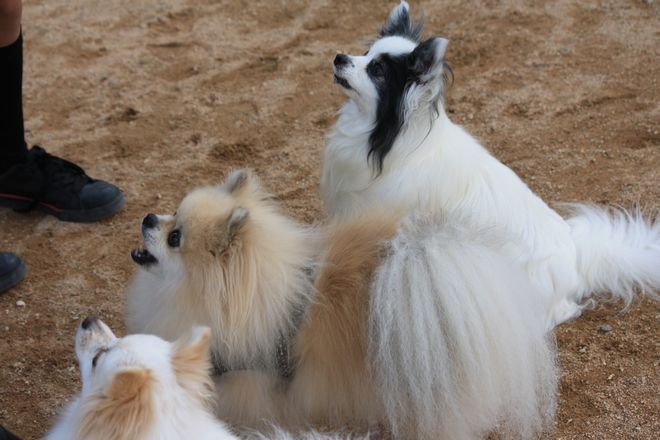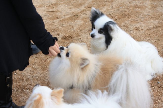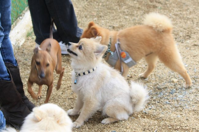 こんなに間入ってきても動じない、りりーなんかおやつみせてもこんなにわんこが周りでうようよしてたら絶対逃げていきますわ☆