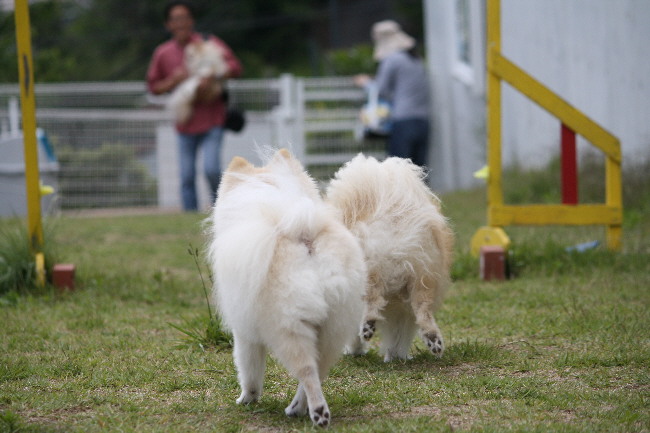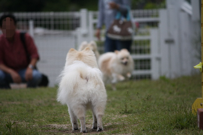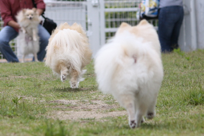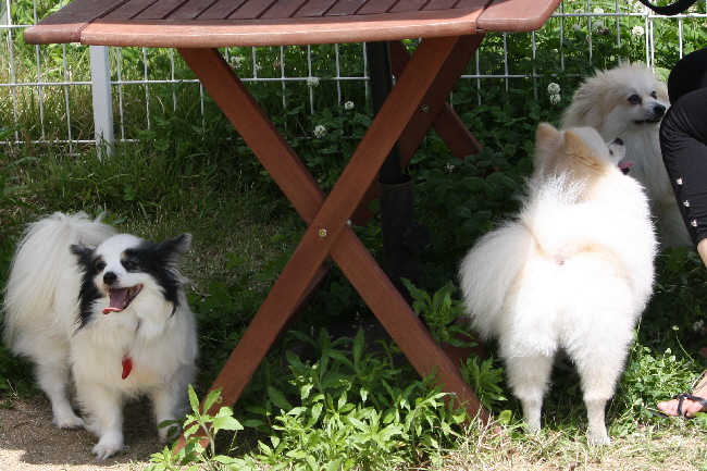 こうして暑い中3ポメ+1パピでのプチオフ会が始まりました。