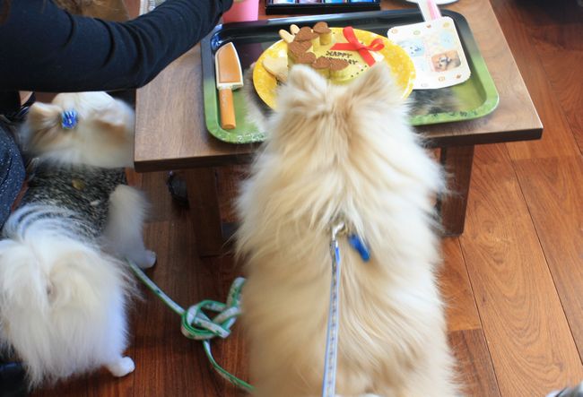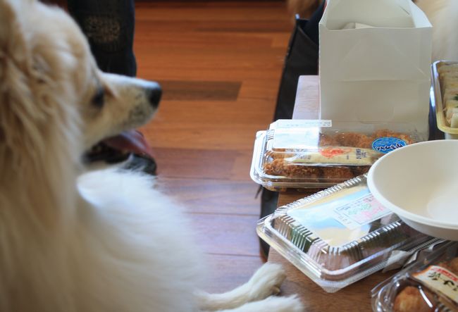 こんな美味しいものが並んでると勿論ワンコ達は黙っている訳が無く…