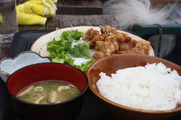 隣のハロとうちゃんさんは前回来られた時に焼肉定食を食べたとの事で、今回は唐揚定食にされていました。