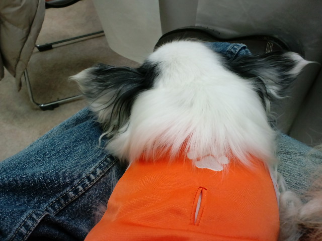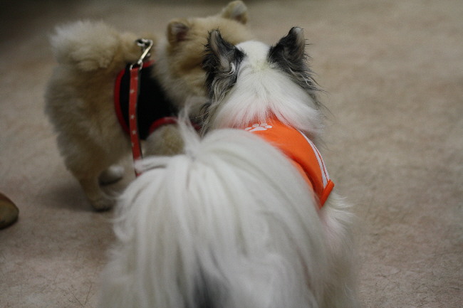パピはこうした知らない室内では自分は他の子のテリトリーに来たと認識しているようで、こうして大人しくしている事が多いです。
