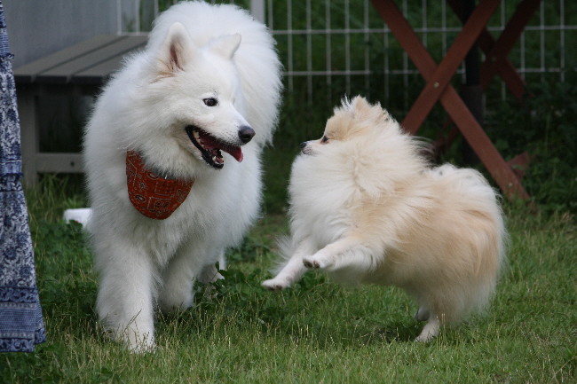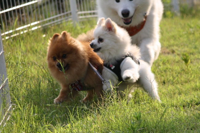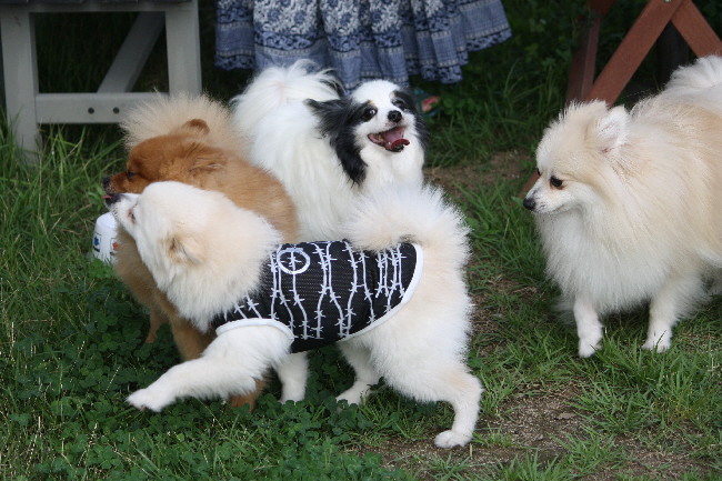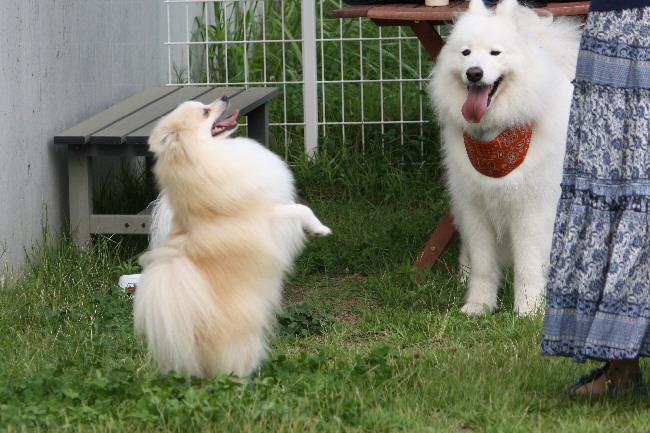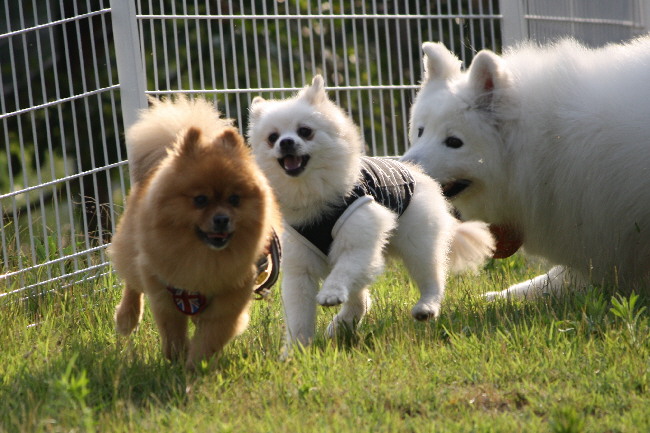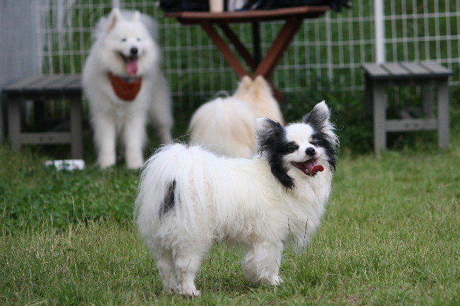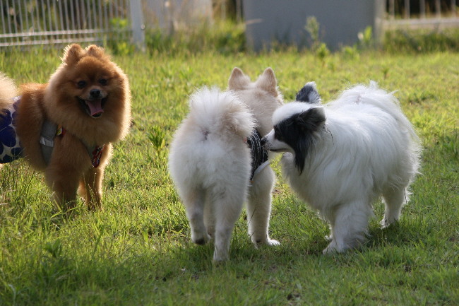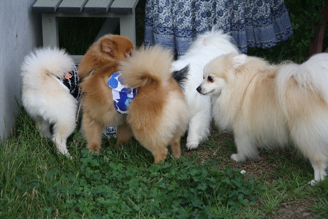 こんな感じで3ポメ+1サモ+1パピの集いが始まりました。