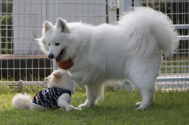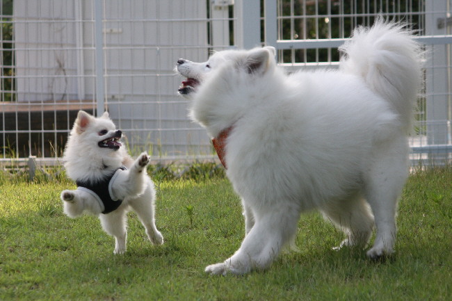 いつも愛犬広場でクッキー君を見ているので「デカっ!!」とはビックリしなかったけど、それでもパピと比べるとこの大きさ
