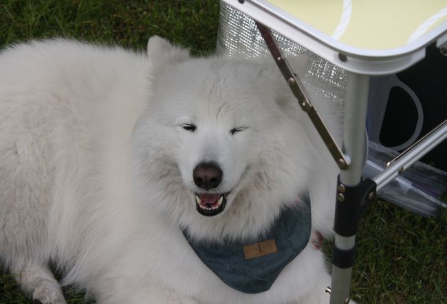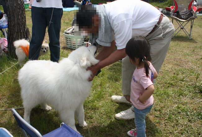 どこへ行っても人気者のさくらちゃん、この日もまた他でBBQをされている方に可愛がられていました。
