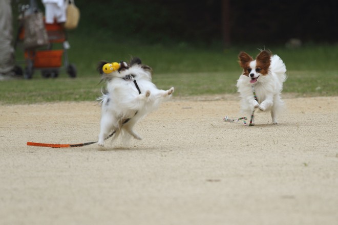 ナイト君、解放されて嬉しそうな走りの舞、ザック君に取られそうな上から8枚目の写真がなんとなく走っている2ワンの足が一緒で笑えましたよ~