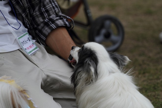 楽しそうなジョンと対照的にムッとした表情のパピ(笑)