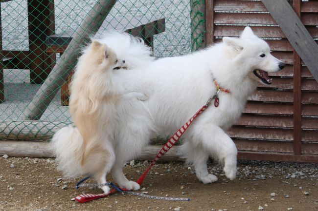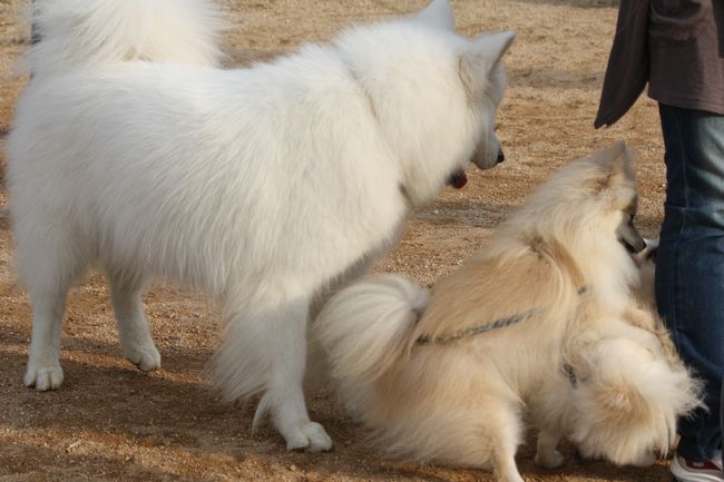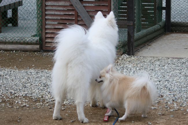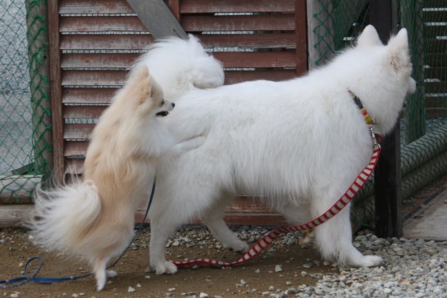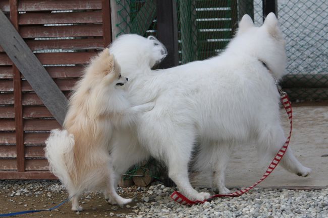 ジョンは嬉しそうなんだけど、さくらちゃんは全く相手をしていない感じです(笑)