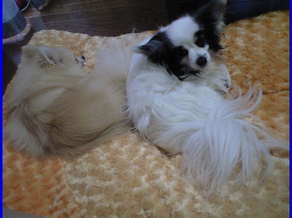 普段ならジョンも起きてパピにちょっかいをかけてパピが嫌がって逃げるんですが、この時は疲れていたのか