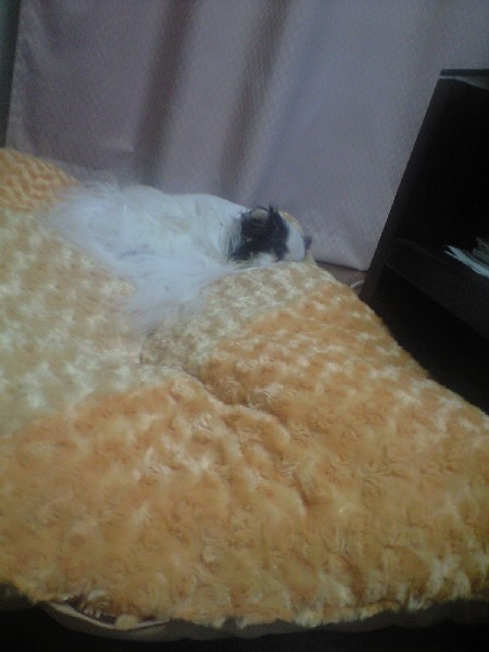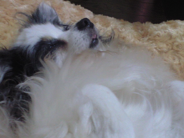 パピはジョンがソファで寝ている時もこのマザークッションで寝る事もあまりなかったので、こうしたフカフカな上は好きではないのかな?とも思っていたんですけど、寒くなってきたことだしジョンの温もりがあったからなんしょうか?この日は珍しく長い時間寝ていました。