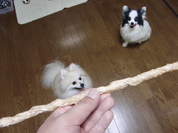 うちは、ささみ巻きガムをあげても、ささみだけ食べてあとはポイっ(^^;)なんで、あげないんですが、ガム食べてくれると、歯のケアにもなるしいいですよね~(≡^∇^≡)