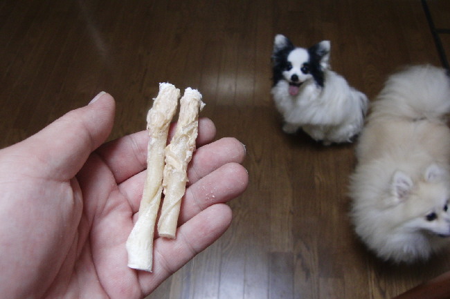 一時はよく巻きガムとかもあげていたんだけど、最近は歯石を取る効果があるオヤツばかりあげているので(効果全然ないけどw)、この類の物を買うのは久しぶりです。