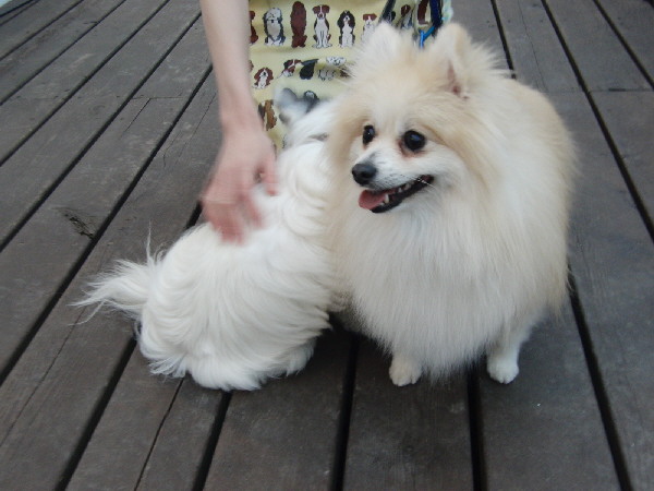 上にUPした様にパピもお迎えの時に連れて行ったんですけど、トリマーさんがジョンを連れて来た時に尻尾を振って喜んでいました。