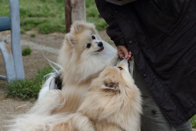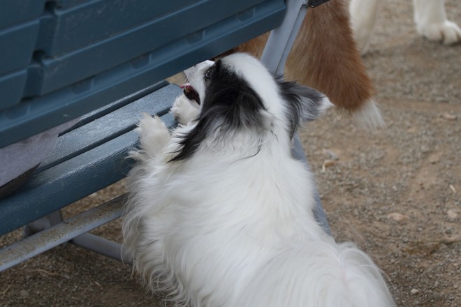 パピくんベンチの後ろから控えめなオヤツ要求は可愛いけどちゃんともらえたかな?